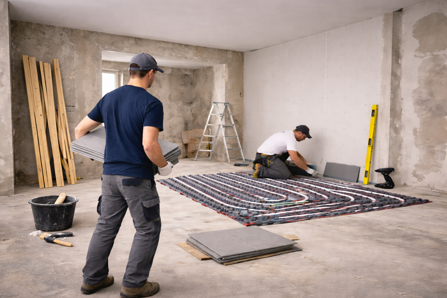 - Mithilfe bei der Vorbereitung und Verlegung von Systemen der Fußbodenheizung (keine eigenständige Installation)